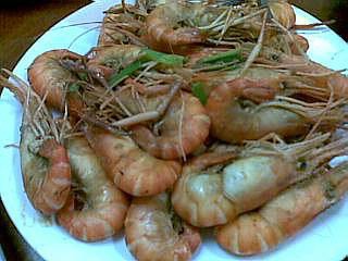 回家..買了一斤泰國蝦..自己烹煮起胡椒蝦..ㄟ...還不錯吃唷~